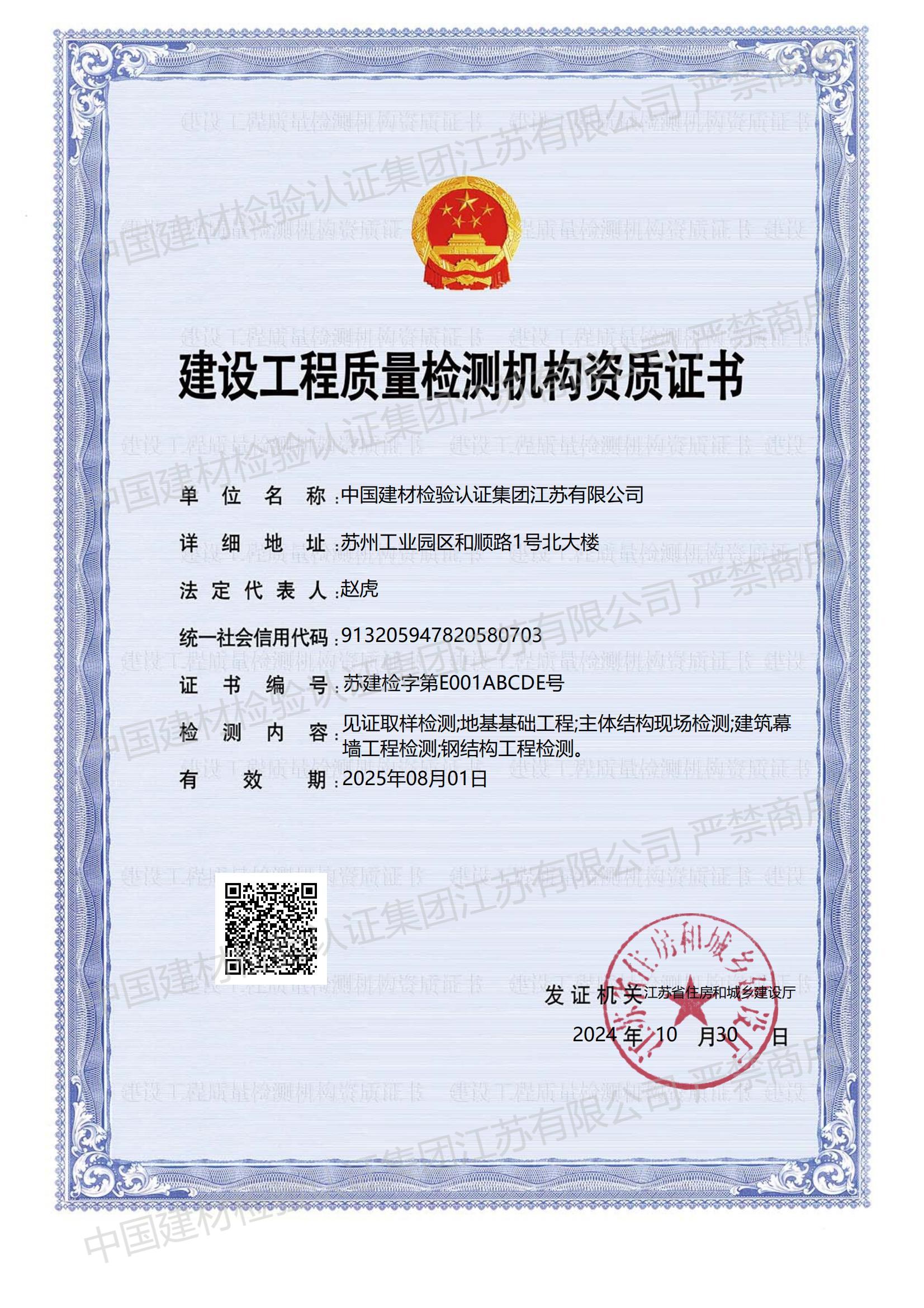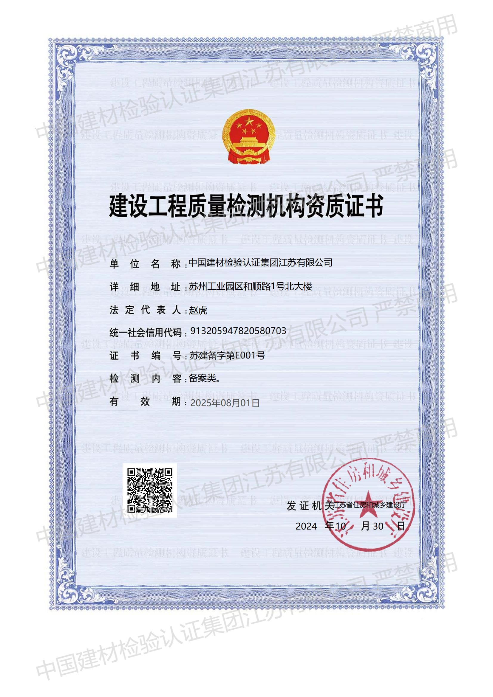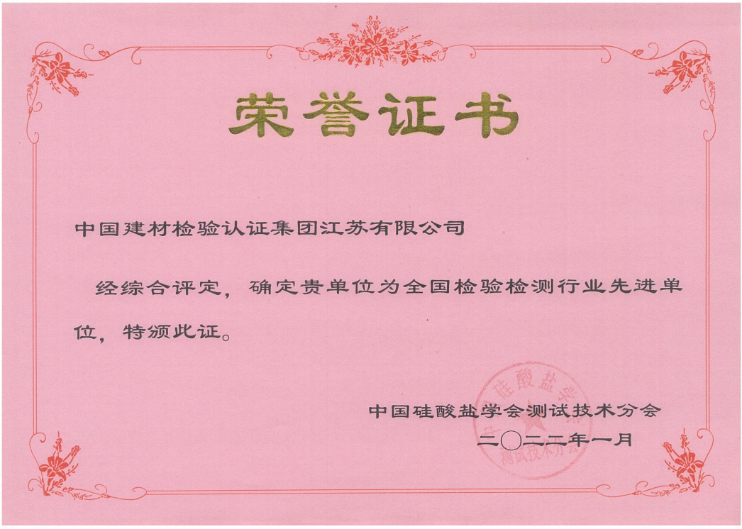 中國(guó)建材檢驗(yàn)認(rèn)證集團(tuán)江蘇有限公司,隸屬于國(guó)檢集團(tuán),總部位于蘇州工業(yè)園區(qū)和順路1號(hào),于2005年11月16日成立,試驗(yàn)室面積約11000平方。